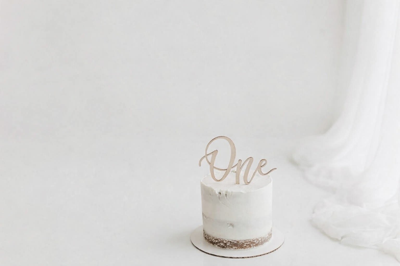 A simple white setup is one of the most timeless cake smash styles. With a clean white background, soft textures, and a simple cake, all the focus stays on your baby and their personality.